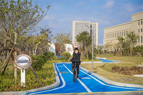 小朋友在位于平潭海事局的口袋公園里騎車游玩。林君斌 攝
