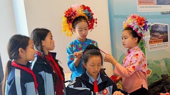 當(dāng)天,與會(huì)人員還參觀(guān)泉州市未成年人思想道德建設(shè)工作和城鄉(xiāng)學(xué)校少年宮建設(shè)成果展?,F(xiàn)場(chǎng)展示項(xiàng)目琳瑯滿(mǎn)目、特色鮮明,共同繪就一幅“全域聯(lián)動(dòng)、多元共育”的未成年人成長(zhǎng)畫(huà)卷:鯉城區(qū)金蒼繡熠熠生輝,絲線(xiàn)勾勒出千年古港的繁華記憶;豐澤區(qū)的“小小簪花推薦官”身著傳統(tǒng)服飾,自信講解蟳埔女頭飾文化;洛江區(qū)妝糕人展位前圍滿(mǎn)觀(guān)眾,孩子們親手捏制五彩糯米小人,笑聲不斷;石獅市帶來(lái)的科學(xué)影像展映讓科技與童真的巧妙交融;南安珠繡將珠與片巧妙聯(lián)結(jié),讓作品巧奪天工;惠安剪瓷雕將樸素的碗碟碎片,制作成龍鳳、花卉的生動(dòng)造型;安溪茶藝與竹藤編展區(qū)茶香氤氳、器物雅致,吸引眾人駐足體驗(yàn);泉州開(kāi)發(fā)區(qū)中醫(yī)藥美育工坊里,孩子們辨識(shí)草藥、制作香囊;泉州臺(tái)商投資區(qū)漆藝作品流光溢彩,彰顯閩南工藝之美。