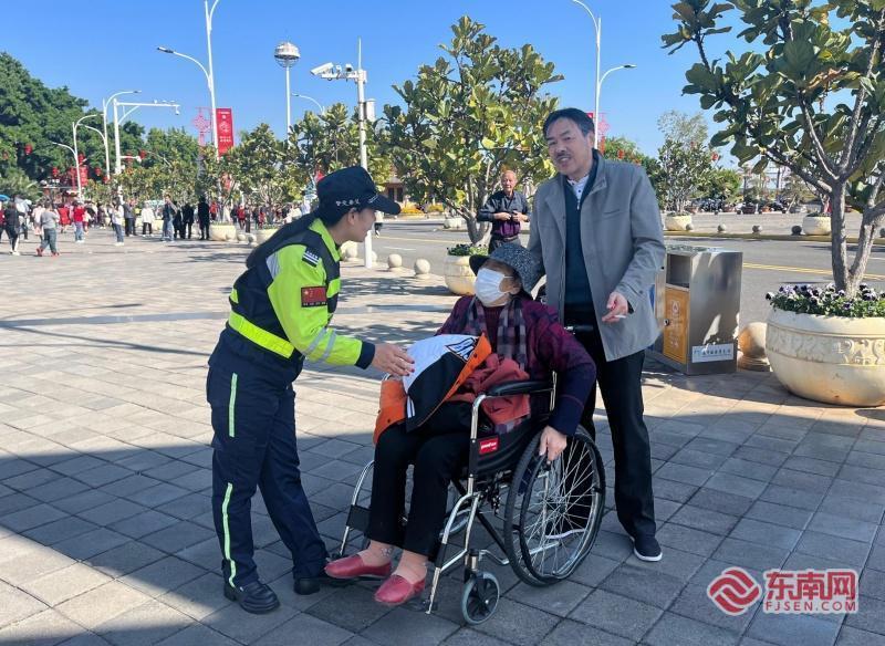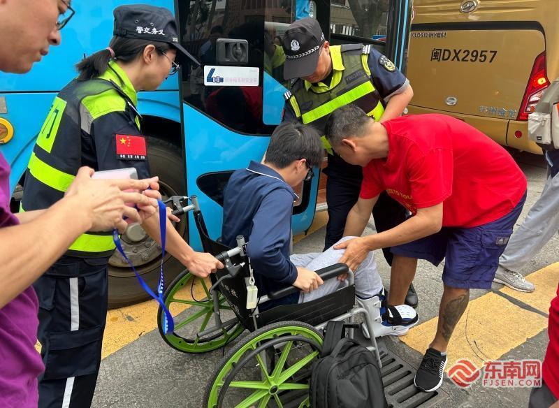 義務(wù)交警為行動不便的考生提供幫助(集美區(qū)義務(wù)交警隊(duì)供圖)
