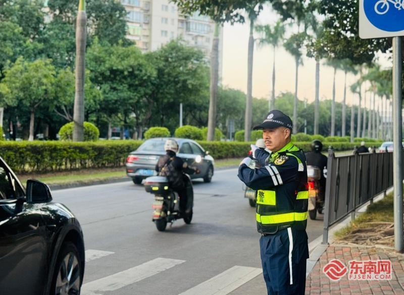 義務(wù)交警在學(xué)校附近守護(hù)平安上學(xué)路(集美區(qū)義務(wù)交警隊(duì)供圖)