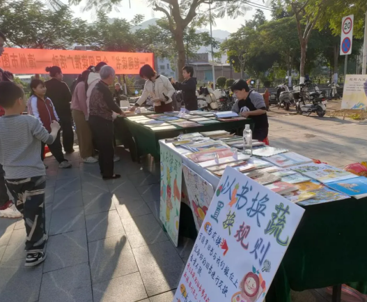 活動(dòng)現(xiàn)場(chǎng),6個(gè)主題鮮明的圖書攤位人氣爆棚,成為知識(shí)流動(dòng)的核心陣地。讀者們帶著自家閑置圖書,穿梭在琳瑯滿目的攤位間,或翻閱挑選心儀讀物,或與攤主交流讀書心得,自由開啟一對(duì)一圖書交換?;顒?dòng)特設(shè)的主攤位還支持用閑置圖書兌換新鮮時(shí)令蔬菜,讓每本舊書都能“換”來實(shí)用驚喜,讓孩子們和村民切實(shí)感受“知識(shí)變現(xiàn)”的獨(dú)特樂趣,也讓閑置資源實(shí)現(xiàn)二次利用。