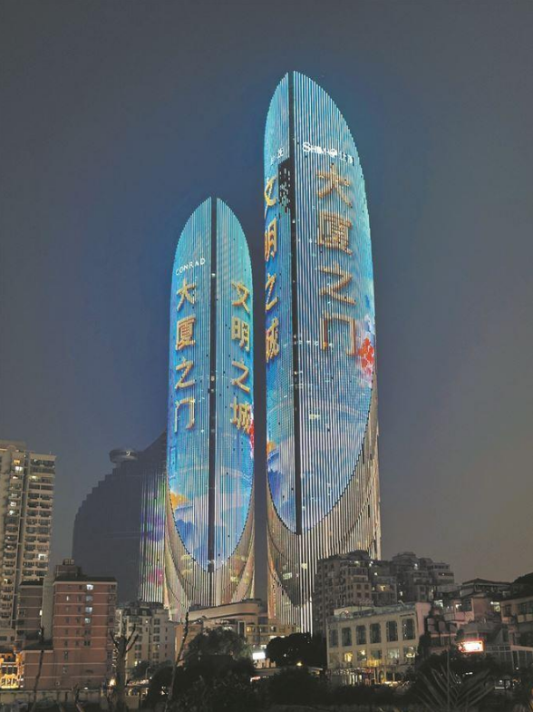 “大廈之門 文明之城”,以堅定的文化自信,屹立于與世界文明對話的前沿,在漲潮聲中貫連古今、通達未來、生生不息。(廈門日報記者 詹文)