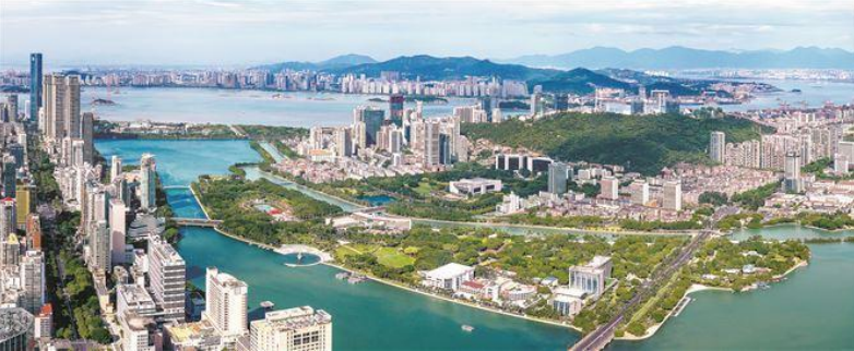 廈門正全力打造“大廈之門 文明之城”城市文明品牌賦能文明新大廈,描繪面向未來的現(xiàn)代化人民城市文明新圖景。圖為優(yōu)美的筼筜湖風光。