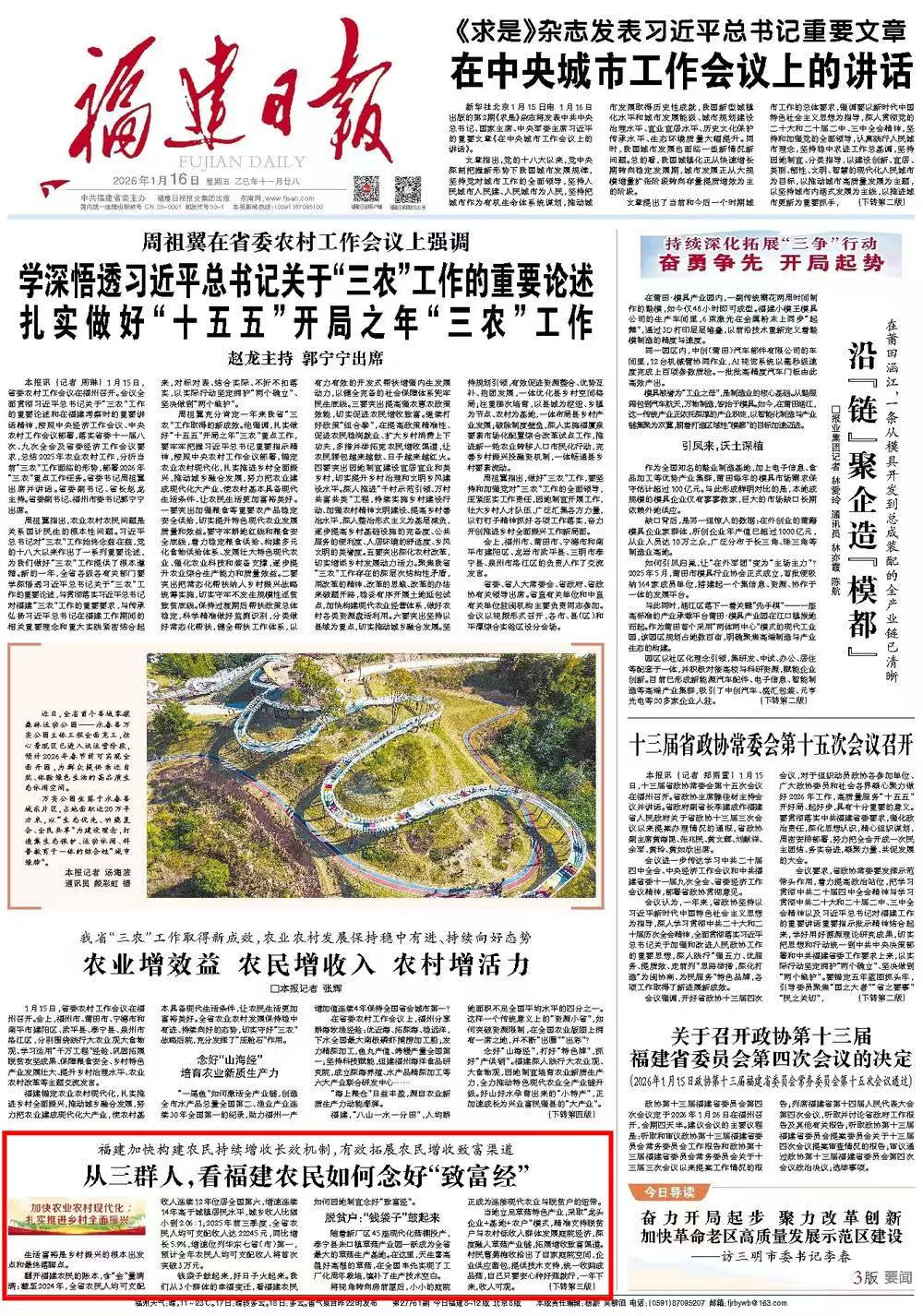 《福建日?qǐng)?bào)》2026年1月16日第01版