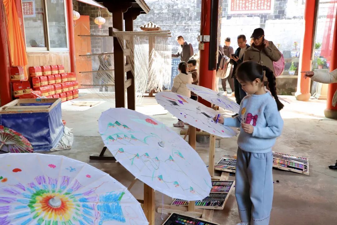 在非遺體驗環(huán)節(jié),油紙傘繪制、線面制作、官埔油扇、剪紙、扎染等多個展區(qū)前人頭攢動。在非遺代表性傳承人的耐心指導下,孩子們親手繪制油紙傘、制作油扇,在動手實踐中感受傳統(tǒng)文化的獨特魅力,現(xiàn)場歡聲笑語不斷,氣氛溫馨而熱烈。