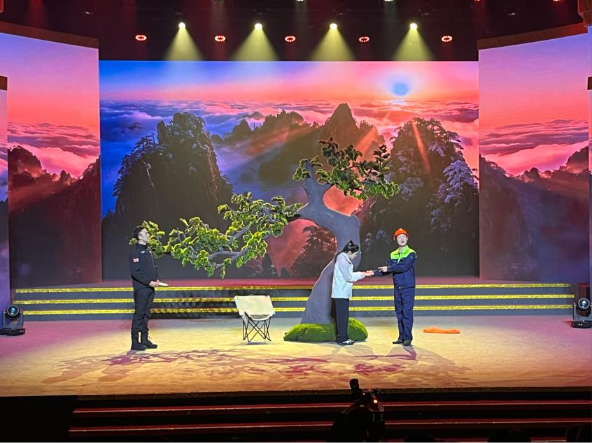 情景小品《一動一靜,守護(hù)黃山之巔》生動講述第九屆全國敬業(yè)奉獻(xiàn)道德模范李培生、胡曉春用心用情守護(hù)美麗黃山的故事。姜麗 攝