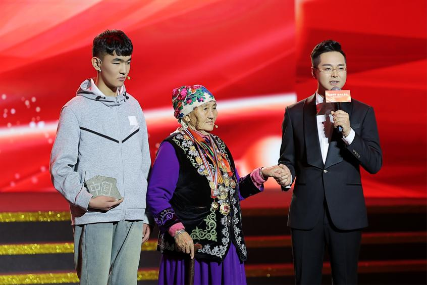 第九屆全國誠實守信道德模范布茹瑪汗·毛勒朵接受現(xiàn)場采訪。主辦方供圖