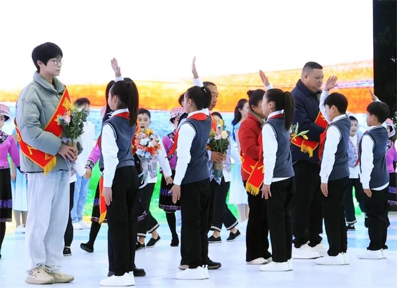 “新時代好少年”向中國好人代表獻(xiàn)花。向真 攝