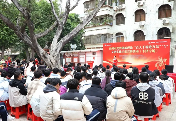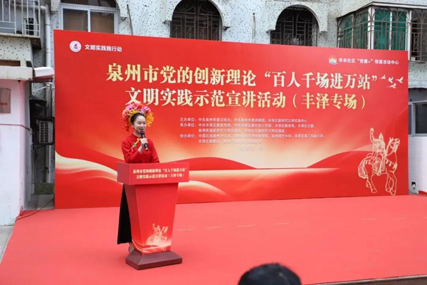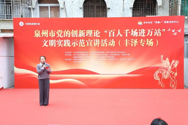 本場活動由中共泉州市委文明辦、中共泉州市委講師團、豐澤區(qū)新時代文明實踐中心主辦,中共豐澤區(qū)委宣傳部、中共豐澤區(qū)委社會工作部、豐澤區(qū)教育局、豐澤區(qū)文聯(lián)、泉秀街道新時代文明實踐所、華豐社區(qū)新時代文明實踐站承辦。