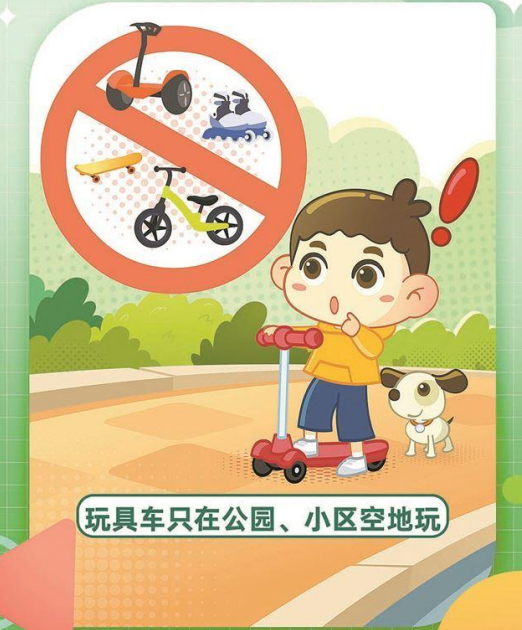 請家長們嚴格管理車輛,嚴禁未滿12周歲的孩子騎自行車,嚴禁未滿16周歲的孩子騎電動自行車(含共享電動車),嚴禁未滿18周歲的孩子駕駛摩托車、汽車等機動車輛。