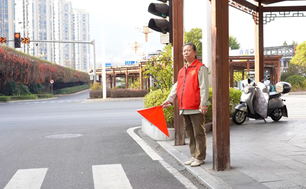 清晨七點(diǎn)半,三元區(qū)萬達(dá)廣場(chǎng)十字路口車流漸密。70歲的陳惠青手持小紅旗,目光專注地掃視著過往行人車輛。紅燈亮?xí)r,她溫和地?cái)r下欲通行的電動(dòng)車;綠燈放行時(shí),她輕聲提醒“低頭族”注意安全;見到提重物的老人,她主動(dòng)上前搭把手。