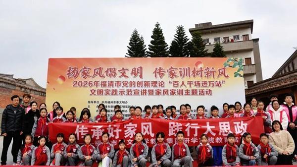 文明風(fēng)2月3日訊 1月28日下午,“揚(yáng)家風(fēng)倡文明 傳家訓(xùn)樹新風(fēng)”——2026年福清市黨的創(chuàng)新理論“百人千場(chǎng)進(jìn)萬站”文明實(shí)踐示范宣講活動(dòng)暨家風(fēng)家訓(xùn)主題活動(dòng)在福清市新時(shí)代文明實(shí)踐中心在陽下街道溪頭村古民居(福州市級(jí)家風(fēng)家訓(xùn)館)成功舉辦?;顒?dòng)通過開展家風(fēng)建設(shè)教育,引導(dǎo)廣大市民樹立正確的家庭觀念和道德風(fēng)尚,以良好家風(fēng)倡導(dǎo)社會(huì)文明風(fēng)尚,共同營造和諧美好的社會(huì)氛圍。