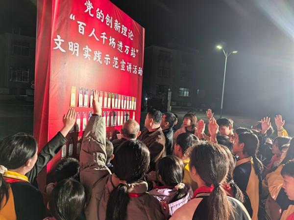 文明風(fēng)2月3日訊 夜幕初降,和平中心小學(xué)操場(chǎng)燈火通明。學(xué)生們圍聚在主題燈謎下,你一言我一語(yǔ),在趣味競(jìng)猜中領(lǐng)會(huì)黨的創(chuàng)新理論。這是和平鄉(xiāng)以黨的二十屆四中全會(huì)及省委十一屆九次全會(huì)精神為引領(lǐng),扎實(shí)推進(jìn)“百人千場(chǎng)進(jìn)萬(wàn)站”文明實(shí)踐示范宣講活動(dòng)的生動(dòng)實(shí)踐。黨音“活”在鄉(xiāng)土里、“熱”在基層中,為奮進(jìn)新征程持續(xù)注入思想動(dòng)能。