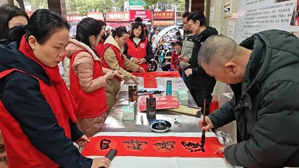 漳港街道“手寫春聯(lián)送千戶 筆墨情深暖萬家”文藝志愿服務活動群眾正在手寫春聯(lián)