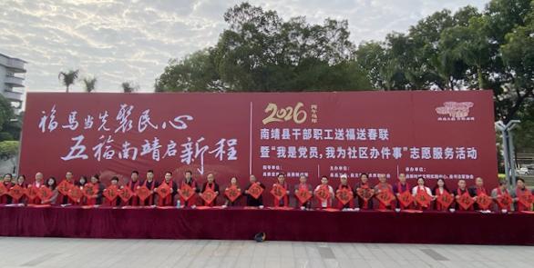 文明風(fēng)2月4日訊 “福馬當(dāng)先聚民心,五福南靖啟新程”。2月4日上午,南靖縣山城鎮(zhèn)蘭陵廣場墨香氤氳、暖意融融,2026年干部職工送福送春聯(lián)暨“我是黨員,我為社區(qū)辦件事”志愿服務(wù)活動(dòng)在此啟幕。作為“我們的節(jié)日?春節(jié)”系列文明實(shí)踐活動(dòng)的重要載體,這場墨香之約將傳統(tǒng)文化傳承與志愿服務(wù)精神深度融合,為南靖縣職工群眾送上滿滿年味與新春祝福。