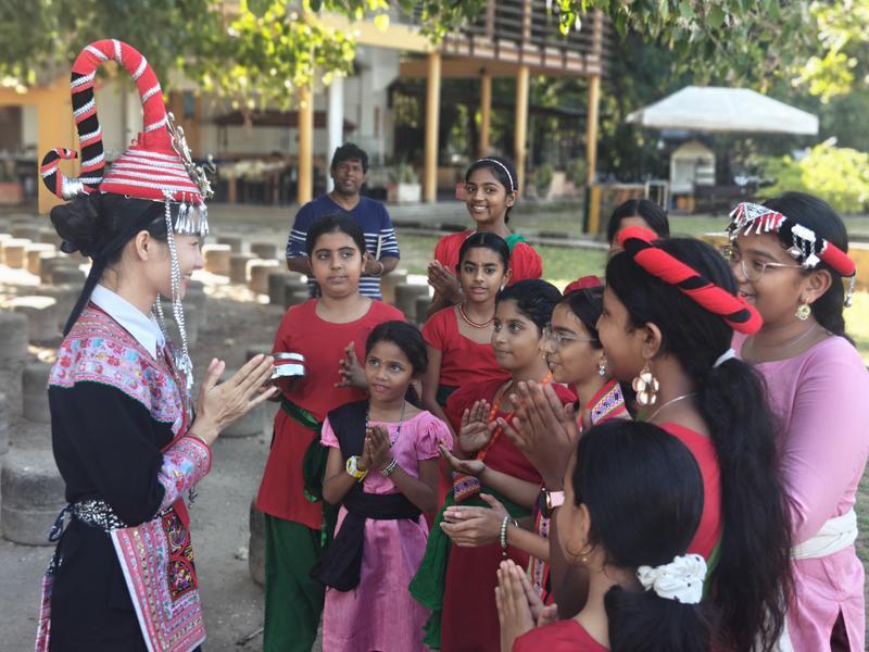 雷清梅走入校園,教孩子們唱畬歌。