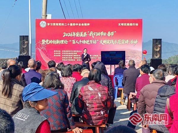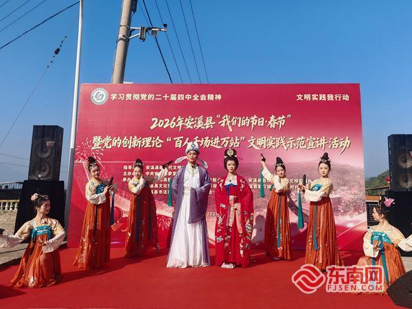 新春將至,萬(wàn)象更新。2月6日上午,2026年安溪縣“我們的節(jié)日·春節(jié)”暨黨的創(chuàng)新理論“百人千場(chǎng)進(jìn)萬(wàn)站”文明實(shí)踐示范宣講活動(dòng)在魁斗鎮(zhèn)鐘山村古厝廣場(chǎng)舉行。活動(dòng)將黨的創(chuàng)新理論宣講與文藝展演、民生關(guān)愛(ài)、文化服務(wù)有機(jī)融合,送上了一場(chǎng)兼具理論深度、文化韻味與民生溫度的新春盛宴。
