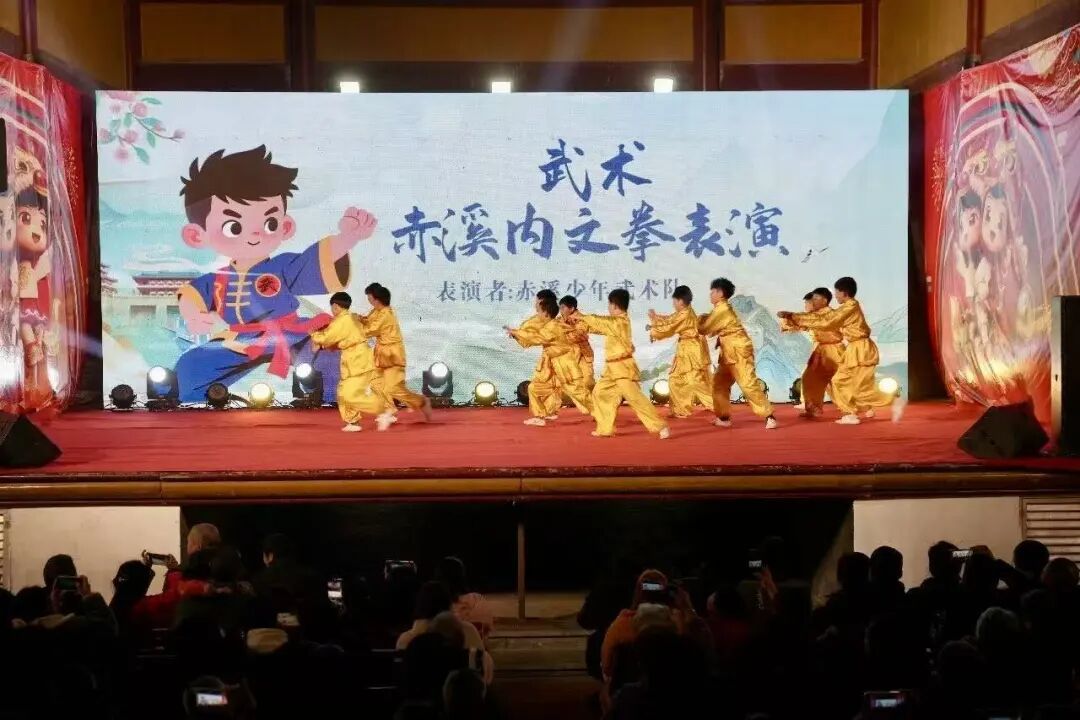 活動在激昂振奮的赤溪青獅表演中熱鬧開場。隨后,一系列富有本土特色的節(jié)目輪番上演,精彩不斷。非遺項(xiàng)目赤溪內(nèi)文拳及其棍術(shù)表演剛勁有力,虎虎生威,展現(xiàn)了傳統(tǒng)武術(shù)的深厚底蘊(yùn)與傳承活力。舞蹈節(jié)目《猶有花枝俏》清雅堅(jiān)韌,《蒼穹喚》則大氣磅礴,舞出了山水詩意。語言類節(jié)目評書《毛孩對聯(lián)》詼諧幽默,引得臺下掌聲與歡笑陣陣。