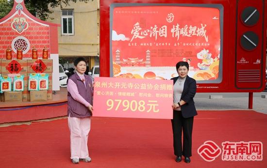 泉州大開(kāi)元寺公益協(xié)會(huì)代表向鯉城區(qū)新時(shí)代文明實(shí)踐中心捐贈(zèng)慰問(wèn)資金和物資。鯉城區(qū)委宣傳部 供圖