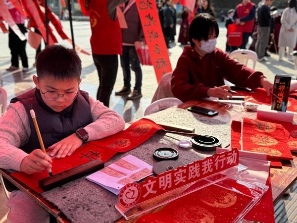 活動還特別設(shè)置了翰墨迎春、拓印年味、馬上讀書·新春書市三大特色板塊,吸引無數(shù)群眾駐足參與,讓傳統(tǒng)年俗在新時代煥發(fā)新生機(jī)。同時,現(xiàn)場暖心服務(wù)站成為一道溫情風(fēng)景線,愛心茶攤、公益義診、義務(wù)理發(fā)等便民服務(wù)一應(yīng)俱全,志愿者們熱情周到、細(xì)致服務(wù),把關(guān)懷送到群眾身邊,把溫暖送到群眾心坎上。
