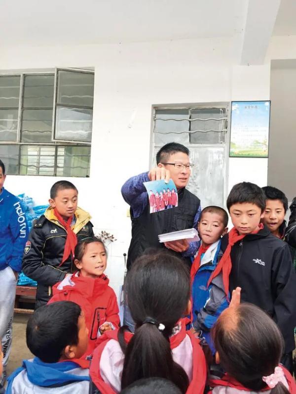 卞華偉每年都用相機記錄山區(qū)學(xué)生們的成長。這是2017年在云南麗江玉龍縣黃山鎮(zhèn)南溪完小,卞華偉將沖洗好的照片送給孩子們。受訪者供圖