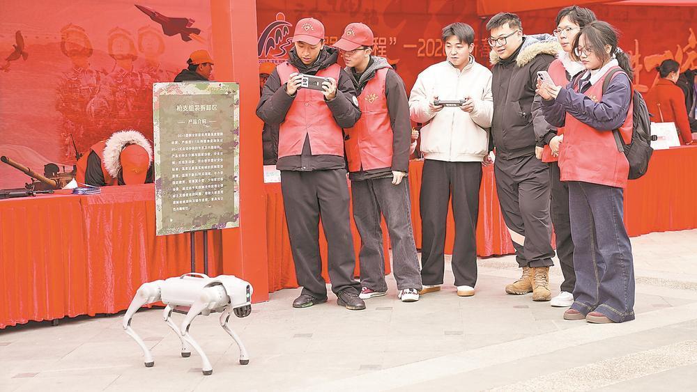 志愿者現(xiàn)場演示機器狗的操作。連小慧 攝
