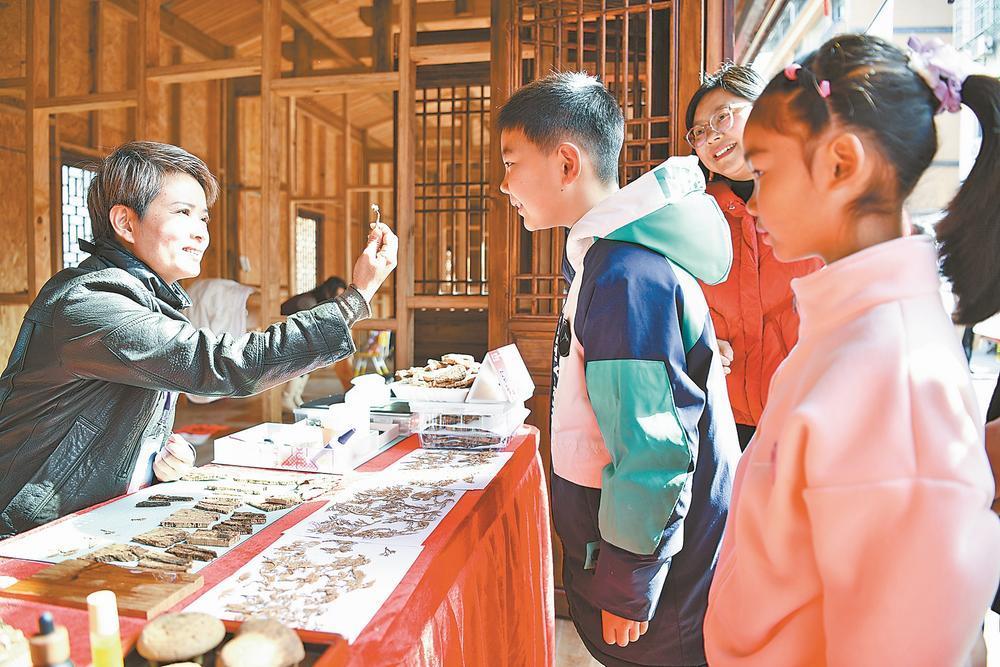 軟木雕引發(fā)小朋友的濃厚興趣。通訊員 王英德 福建日報見習(xí)記者 李子衡 攝