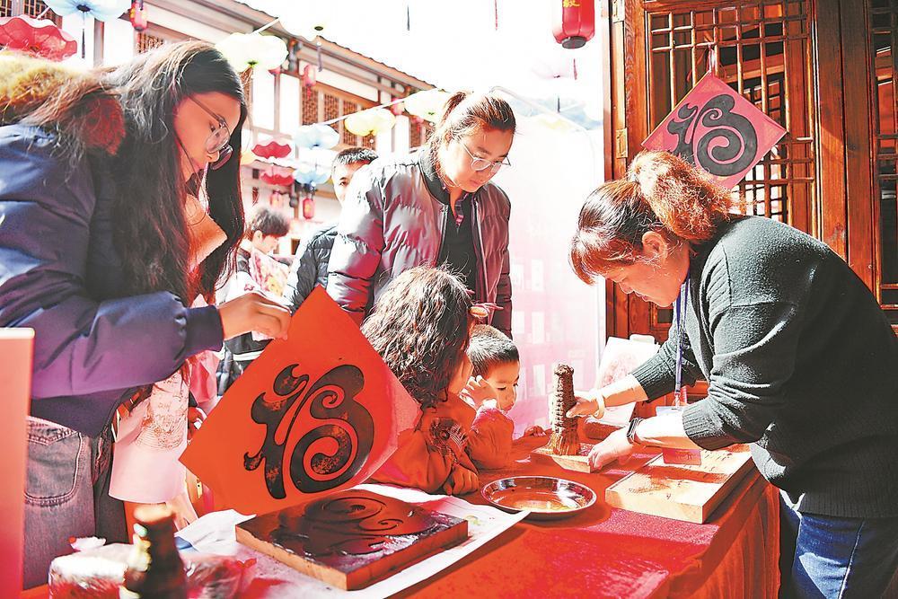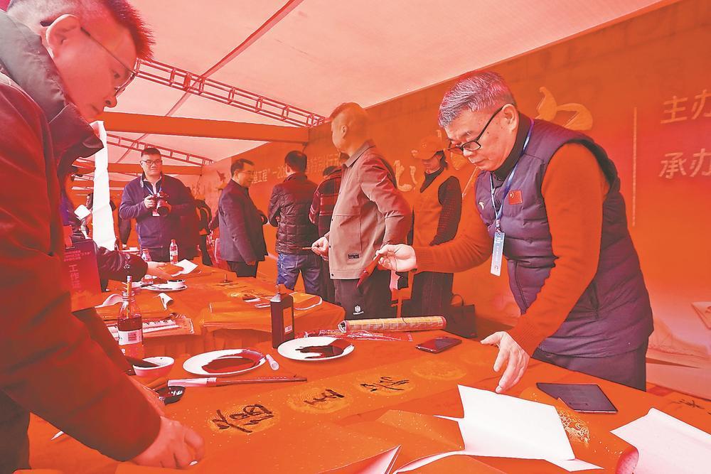 書法家為群眾書寫春聯(lián)。林建偉 攝