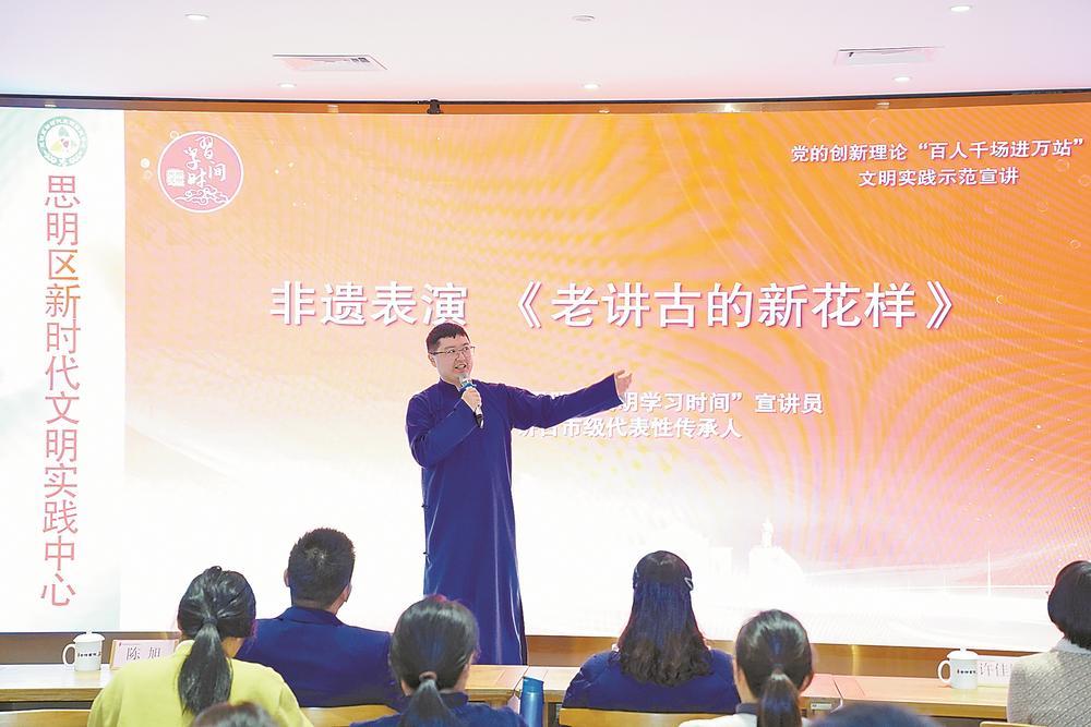 思明區(qū)新時(shí)代文明實(shí)踐中心創(chuàng)新宣講形式,以非遺講古賦能理論傳播。(思明區(qū)文明辦供圖)