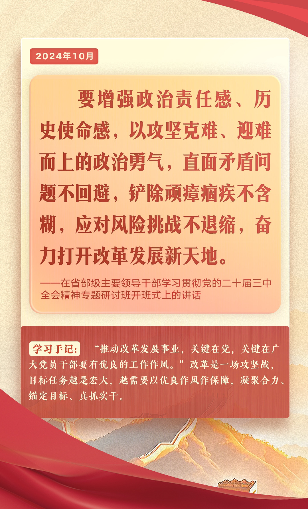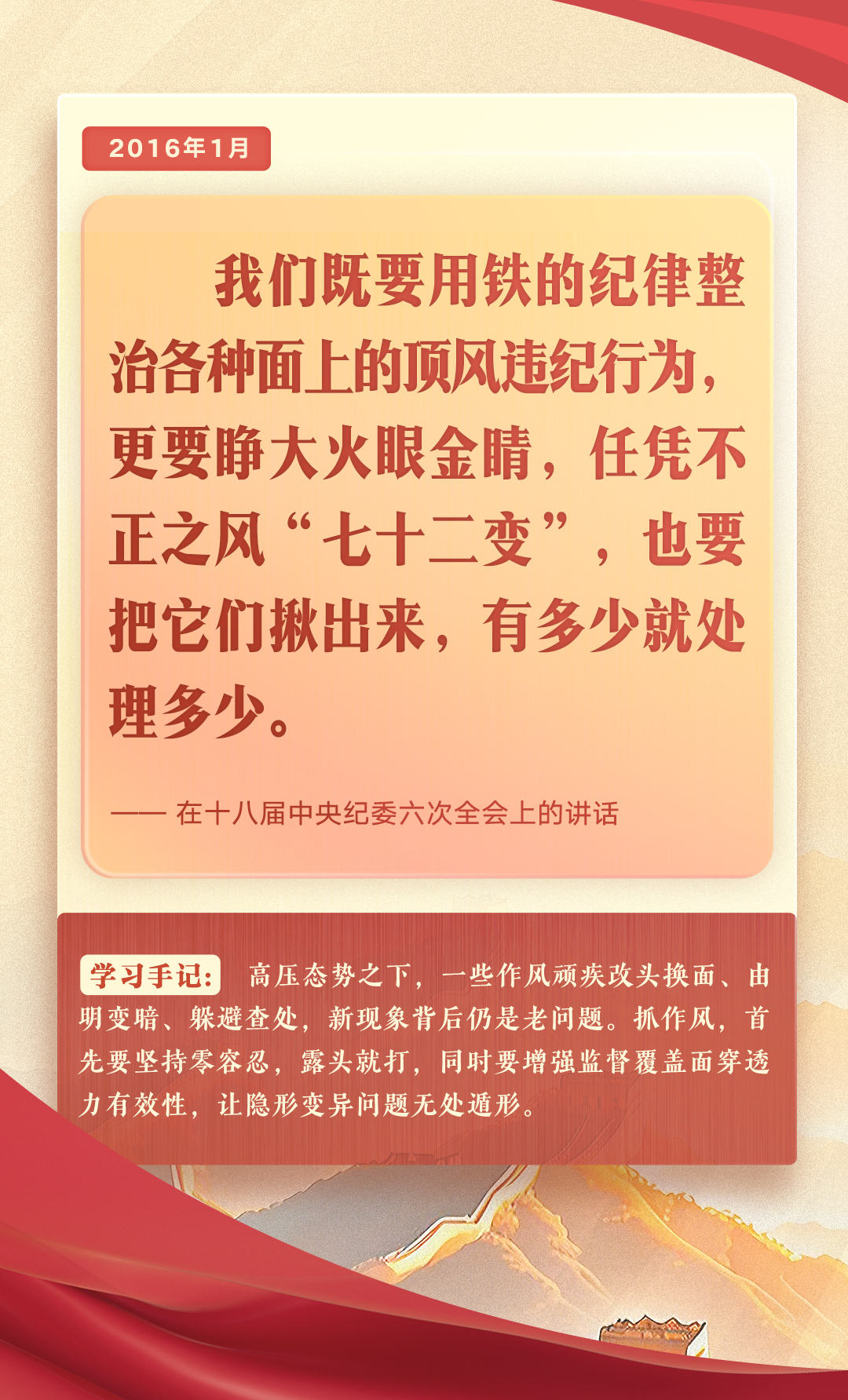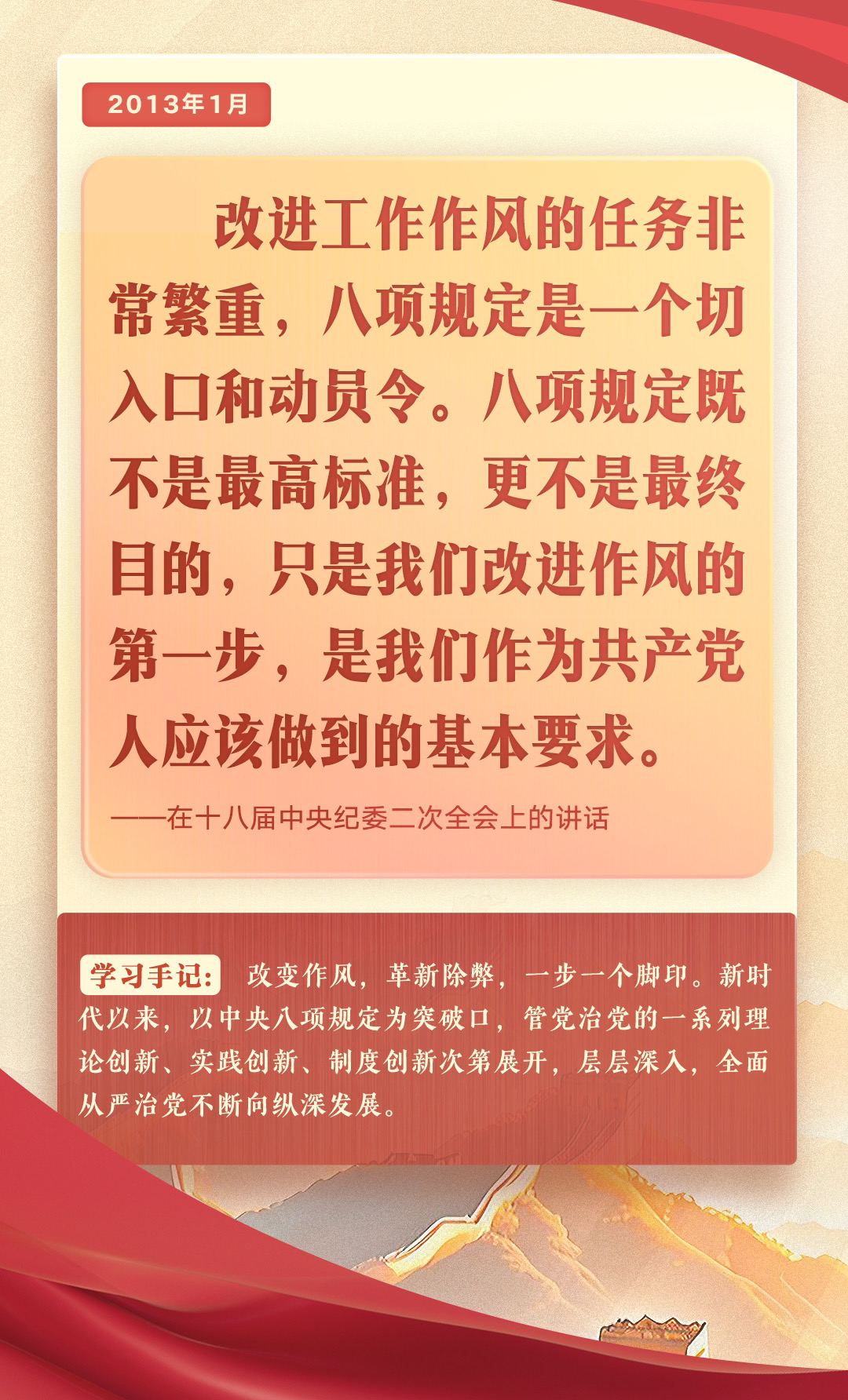 (一) 收官之年,繼往開來。 今年要高質(zhì)量完成“十四五”規(guī)劃目標(biāo)任務(wù),為實(shí)現(xiàn)“十五五”良好開局打牢基礎(chǔ)。 向第二個百年奮斗目標(biāo)進(jìn)軍,圓滿實(shí)現(xiàn)“十四五”發(fā)展目標(biāo)是關(guān)鍵的一步。筑牢作風(fēng)基石,煥發(fā)黨的創(chuàng)造力、凝聚力、戰(zhàn)斗力,才能打贏收官戰(zhàn),更好啟新程、開新局。 在決勝“十四五”的重要節(jié)點(diǎn)上,黨中央決定在全黨開展深入貫徹中央八項(xiàng)規(guī)定精神學(xué)習(xí)教育,正當(dāng)其時,意義重大。 “以作風(fēng)建設(shè)新成效推動保持黨的先進(jìn)性純潔性、不斷贏得人民群眾信任擁護(hù),為進(jìn)一步全面深化改革、推進(jìn)中國式現(xiàn)代化提供有力保障?!睂τ陂_展這次學(xué)習(xí)教育,日前中辦印發(fā)的《通知》開宗明義。 黨的作風(fēng),決定黨和國家事業(yè)成敗,關(guān)系黨的生死存亡。對作風(fēng)問題,任何時候都不能掉以輕心。 作風(fēng)建設(shè)永遠(yuǎn)在路上,打鐵必須自身硬,要登絕頂莫辭勞。 習(xí)近平總書記提出明確要求:“各級黨組織要精心組織實(shí)施,推動黨員、干部增強(qiáng)定力、養(yǎng)成習(xí)慣,以優(yōu)良作風(fēng)凝心聚力、干事創(chuàng)業(yè)?!?/p> 2012年12月,黨的十八大閉幕后不久,中央八項(xiàng)規(guī)定出臺,這是新時代制定的第一部重要黨內(nèi)法規(guī)。這一新時代的徙木立信之舉,改變中國。 今天,以學(xué)習(xí)教育為契機(jī),中央八項(xiàng)規(guī)定這張作風(fēng)建設(shè)的“金色名片”,又將擦出怎樣的光芒,綻放大黨風(fēng)華,照亮大國偉業(yè)? 歷史是最好的老師,實(shí)踐是最有力的證明。 “黨的十八大之前,面對一個時期以來黨內(nèi)存在的突出問題,全黨是憂心忡忡的,我是憂心忡忡的?!痹谝淮沃匾獣h上,習(xí)近平總書記深刻揭示了新時代全面從嚴(yán)治黨的大背景。 八項(xiàng)規(guī)定一子落地,作風(fēng)建設(shè)滿盤皆活,黨風(fēng)政風(fēng)煥然一新,社風(fēng)民風(fēng)持續(xù)向好,黨在人民心中的形象實(shí)現(xiàn)重塑。 “這些年,八項(xiàng)規(guī)定確實(shí)是推動了根本性的變化,風(fēng)氣為之一新,過去積重難返的現(xiàn)象大部分沒有了?!?/p> 致廣大而盡精微。 從人民群眾反映強(qiáng)烈的作風(fēng)問題切入,持之以恒正風(fēng)肅紀(jì)反腐,打出一套自我革命的“組合拳”,形成一整套制度規(guī)范體系……黨找到了跳出治亂興衰歷史周期率的第二個答案,贏得了“兩個歷史主動”。 波瀾壯闊、氣勢恢宏的篇章,起筆看似尋常。但正是以制定和落實(shí)中央八項(xiàng)規(guī)定破題,有效解決了“老虎吃天不知從哪兒下口”的問題。 實(shí)踐中,我們黨不斷深化對作風(fēng)建設(shè)的規(guī)律性認(rèn)識,為管黨治黨提供了重要認(rèn)識論和方法論,為開展這次學(xué)習(xí)教育提供了思想和行動指引。 (二) 作風(fēng)問題的核心是黨同人民群眾的關(guān)系問題。習(xí)近平總書記強(qiáng)調(diào):“黨的作風(fēng)正,人民的心氣順,黨和人民就能同甘共苦。” 黨的作風(fēng)關(guān)系人心向背。執(zhí)政黨如果不注重作風(fēng)建設(shè),聽任不正之風(fēng)侵蝕黨的肌體,就有失去民心、喪失政權(quán)的危險。 一顆蘋果,照鑒黨的優(yōu)良作風(fēng),映照為民造福的初心。 遼寧錦州,關(guān)于蘋果的紅色故事啟人深思。今年春節(jié)前夕到遼寧,習(xí)近平總書記再次提起。 遼沈戰(zhàn)役期間,錦州鄉(xiāng)間的蘋果熟了,解放軍戰(zhàn)士行軍路過,雖然饑渴難耐,卻一個都沒有摘。 “毛主席說‘不吃是很高尚的,而吃了是很卑鄙的,因?yàn)檫@是人民的蘋果’?!笨倳浀脑捯馕渡铋L,“這樣的蘋果,我們現(xiàn)在也不能吃。” 陜西延安南溝村,建起高標(biāo)準(zhǔn)山地蘋果示范園和生態(tài)農(nóng)業(yè)示范園,滴灌技術(shù)、矮化種植技術(shù)、選果生產(chǎn)線等不斷發(fā)展,蘋果托起了鄉(xiāng)親們的致富夢。 2022年10月,總書記來到這里,稱贊“這就是農(nóng)業(yè)現(xiàn)代化,你們找到了合適的產(chǎn)業(yè)發(fā)展方向”。 甘肅天水麥積區(qū),一渠洮河水解燃眉之急?;ㄅLO果長勢好、品質(zhì)優(yōu),進(jìn)冷庫、乘輕軌,借助海外倉銷往20多個國家和地區(qū)。 2024年9月,總書記專程到南山花牛蘋果基地考察,強(qiáng)調(diào)“把這個特色產(chǎn)業(yè)做得更大”。 ………… 中國式現(xiàn)代化,讓人民過上幸福生活是頭等大事。 從不能吃人民的蘋果,到帶領(lǐng)群眾發(fā)展蘋果產(chǎn)業(yè),再到推動農(nóng)業(yè)農(nóng)村現(xiàn)代化……紀(jì)律作風(fēng)一以貫之,價值追求一脈相承,責(zé)任使命與時俱進(jìn)。 革命戰(zhàn)爭年代,黨用鐵的紀(jì)律贏得了民心,“喚起工農(nóng)千百萬,同心干”,帶領(lǐng)人民締造了新中國。 新征程上,只有繼續(xù)以優(yōu)良作風(fēng)凝心聚力,才能緊緊依靠全體人民和衷共濟(jì)、共襄大業(yè)。 黨的最大政治優(yōu)勢是密切聯(lián)系群眾,黨執(zhí)政后的最大危險是脫離群眾,任何時候都不能忘。 黨的二十大閉幕不到一周,習(xí)近平總書記帶領(lǐng)二十屆中共中央政治局常委瞻仰延安革命紀(jì)念地,專門提到“窯洞對”,寓意深遠(yuǎn)。 加強(qiáng)作風(fēng)建設(shè),必須