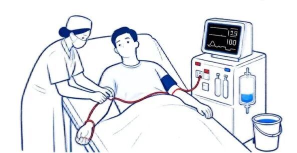 簡單來說,只有慢性腎衰竭尿毒癥期的患者,才大概率需要"終身透析";急性腎衰竭患者的透析,更多是"過渡性治療"。 Q3 血液透析過程痛苦嗎,具體是怎樣進(jìn)行的? 透析過程本身通常不痛苦,患者的"不適感"更多來自治療前的準(zhǔn)備和長期的自我管理。 1.透析前:先建"生命線"——血管通路 進(jìn)行血液透析,首先要建立一條安全、通暢的血管通路,這是保證透析順利進(jìn)行的關(guān)鍵,被稱為患者的"生命線"。臨床中最常用的有兩種: 動靜脈內(nèi)瘺:這是長期血液透析患者的"首選通路"。通過外科小手術(shù),將患者手臂上的一根動脈和臨近的一根靜脈吻合,讓動脈血流入靜脈。經(jīng)過1~3個(gè)月, 靜脈會逐漸"動脈化"——管壁變厚、管腔變粗,既能承受透析時(shí)的血液流量,又便于護(hù)士反復(fù)穿刺。穿刺時(shí)的疼痛感和普通打針、抽血類似,多數(shù)患者都能耐受。 中心靜脈導(dǎo)管:主要用于"臨時(shí)或緊急情況",比如患者急需透析但動靜脈內(nèi)瘺尚未建好,或內(nèi)瘺出現(xiàn)堵塞、感染等問題時(shí)。醫(yī)生會在患者的頸部或大腿根部植入一根柔軟的導(dǎo)管,導(dǎo)管一端留在體外,用于連接透析管路。這種通路的優(yōu)勢是可以立即使用,但長期使用容易引發(fā)感染、血栓等并發(fā)癥,因此不建議作為長期通路。 2.透析中:4小時(shí)的"安心等待" 治療前,護(hù)士會先核對患者信息,用生理鹽水沖洗透析管路和透析器,確保設(shè)備無菌;接著對血管通路部位(如內(nèi)瘺手臂)進(jìn)行消毒,然后穿刺內(nèi)瘺(或連接中心靜脈導(dǎo)管),將患者的血液通過無菌管路引入透析機(jī)。
