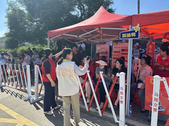 公益“鐺鐺車”為考生家長(zhǎng)、志愿者提供了一處臨時(shí)休憩場(chǎng)所 7日上午8時(shí)許,來(lái)自泉州南少林實(shí)驗(yàn)學(xué)校、洛江區(qū)外國(guó)語(yǔ)學(xué)校的考生們乘著定制公交車陸續(xù)到達(dá)泉州十一中考點(diǎn)。 “今年我司承接了12部定制公交接送考生,特意選擇了現(xiàn)在比較紅的鐺鐺車,還精心挑選了‘985’的車牌號(hào),給考生一個(gè)好的寓意?!比莨患瘓F(tuán)有限責(zé)任公司洛江分公司經(jīng)營(yíng)科科長(zhǎng)蘇彬彬介紹,他們還準(zhǔn)備了一部車作為家長(zhǎng)的休息室,車上配備了礦泉水,還有一些文具,以備考生的不時(shí)之需。 考生丟失身份證 綠色通道及時(shí)補(bǔ)辦 6月6日,高考前一天下午,鯉城公安分局海濱派出所接到考生小吳及家長(zhǎng)的求助。原來(lái),小吳不慎將身份證丟失。了解情況后,戶籍民警很快為小吳辦理好了臨時(shí)身份證。小吳和家長(zhǎng)滿心感激,對(duì)民警連聲道謝后離開(kāi)。 然而當(dāng)晚,意外又發(fā)生了,小吳因保管不當(dāng)導(dǎo)致剛辦好的臨時(shí)身份證嚴(yán)重污損,關(guān)鍵信息難以辨認(rèn)。心急如焚的小吳及家長(zhǎng)再次來(lái)到海濱派出所。值班民警安撫小吳的情緒后,立即聯(lián)系已下班的戶籍民警。戶籍民警迅速返回派出所,重新為小吳辦理臨時(shí)身份證。在核對(duì)信息、重新制證等一系列流程后,嶄新的臨時(shí)身份證交到了小吳的手中。民警反復(fù)叮囑小吳,一定要將證件妥善保管,同時(shí)幫助小吳使用專門的證件袋將臨時(shí)身份證裝好。 無(wú)獨(dú)有偶,7日上午8時(shí)許,在泉州市第十一中學(xué)考點(diǎn),考生劉同學(xué)因忘記攜帶身份證,和家人焦急地來(lái)到洛江公安分局在考點(diǎn)設(shè)立的“高考服務(wù)站”求助。 戶籍民警一邊安撫著劉同學(xué)的情緒,一邊開(kāi)辟“綠色通道”,迅速為其收集資料、核對(duì)信息,短短8分鐘,一張嶄新的臨時(shí)身份證便遞到了劉同學(xué)的手中。劉同學(xué)向民警道謝后立即奔向考場(chǎng)。臨走前,民警貼心提醒劉同學(xué)妥善保管好證件,放松心態(tài),全力應(yīng)考。 考場(chǎng)外護(hù)航 東南公益攜手多個(gè)志愿服務(wù)隊(duì)開(kāi)展高考護(hù)考志愿服務(wù)