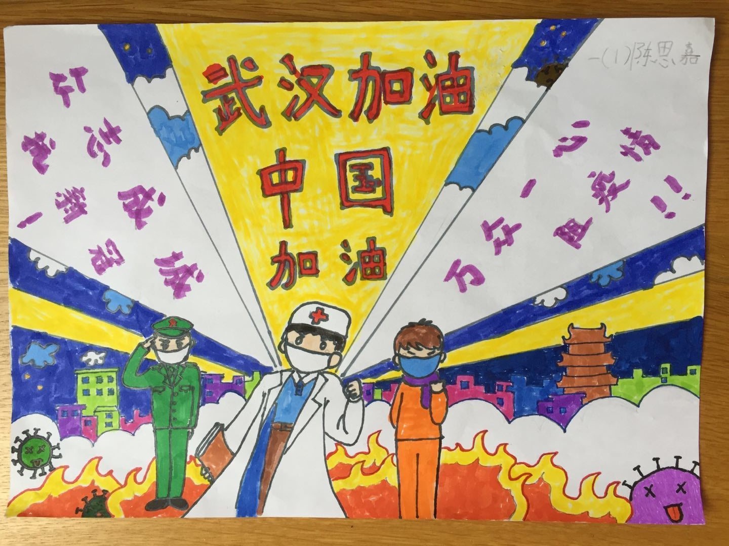 廈門市新翔小學(xué)手抄報和美術(shù)作品_ 一年一班 陳思嘉《武漢加油》