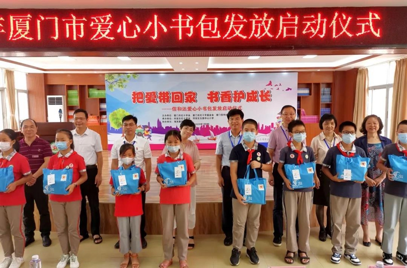 “愛心小書包”作為“愛心廈門”建設(shè)工作中“愛心扶幼行動”的創(chuàng)新項目,自去年籌劃并實施以來,得到了社會各界的認(rèn)可和支持。今年,廈門信和達(dá)電子有限公司共向廈門市紅十字會、廈門市紅十字基金會捐贈“愛心小書包”3000個,總價值405000元。其中,1000個定向捐給同安區(qū)五顯中心小學(xué)和蓮花中心小學(xué),每校500個。