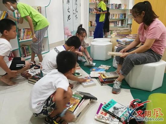 小小志愿者學習分類圖書。同安區(qū)委文明辦供圖