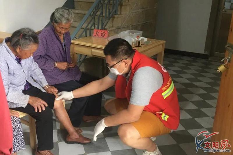現(xiàn)場,志愿者們還提供量血壓、貼穴位貼、按摩等服務(wù),幫助村民減少病痛??坪暄劭埔苍鲈O(shè)了眼部保健服務(wù),一同為村民們的健康保駕護航。