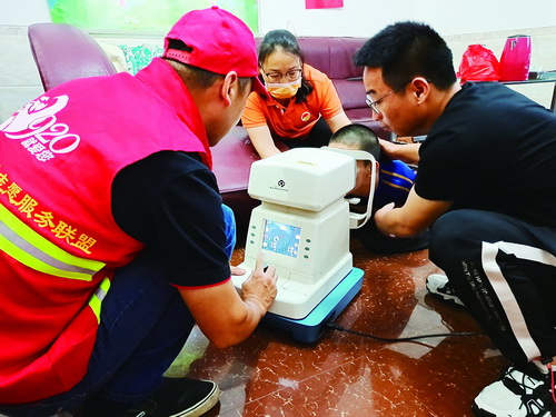 為肢體殘疾服務(wù)對(duì)象進(jìn)行視力檢測(cè)。 同心社工中心供圖