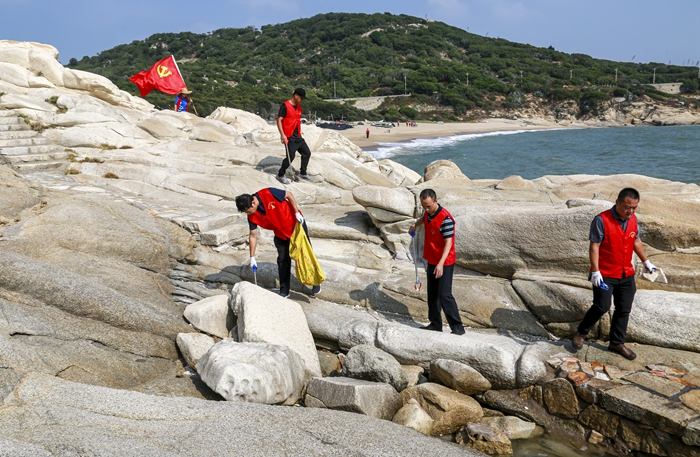 湄洲島媽祖義工志愿者清理岸線(xiàn)海漂垃圾
