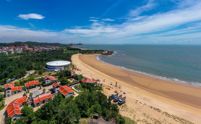 湄洲島海岸線(xiàn):水清、岸綠、藍(lán)天、碧海、金沙灘