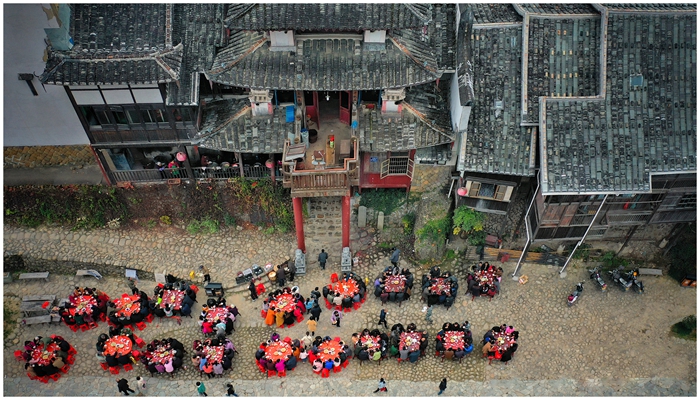 近年來,隨著游客的加入,“春宴”逐漸演變?yōu)闊狒[的節(jié)慶活動,掛燈籠、打糍粑、舞肥獅……各色年俗活動也紛紛上演,贏得了游客們的叫好連連。傳承傳統(tǒng)文化、發(fā)掘農(nóng)村美食,嵩口鎮(zhèn)把鄉(xiāng)村文明、鄰里溫情、傳統(tǒng)習(xí)俗編織成一幅美麗的圖景。