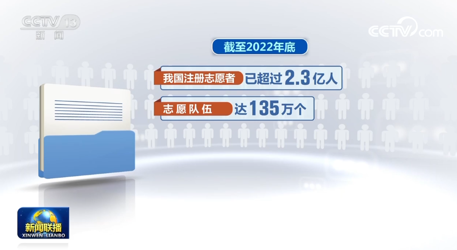 統(tǒng)計數(shù)據(jù)顯示,截至2022年底,我國注冊志愿者已超過2.3億人,志愿隊伍總數(shù)達135萬個。廣為弘揚的雷鋒精神,成為新時代推進社會主義現(xiàn)代化建設、提升社會文明進步的強大力量。