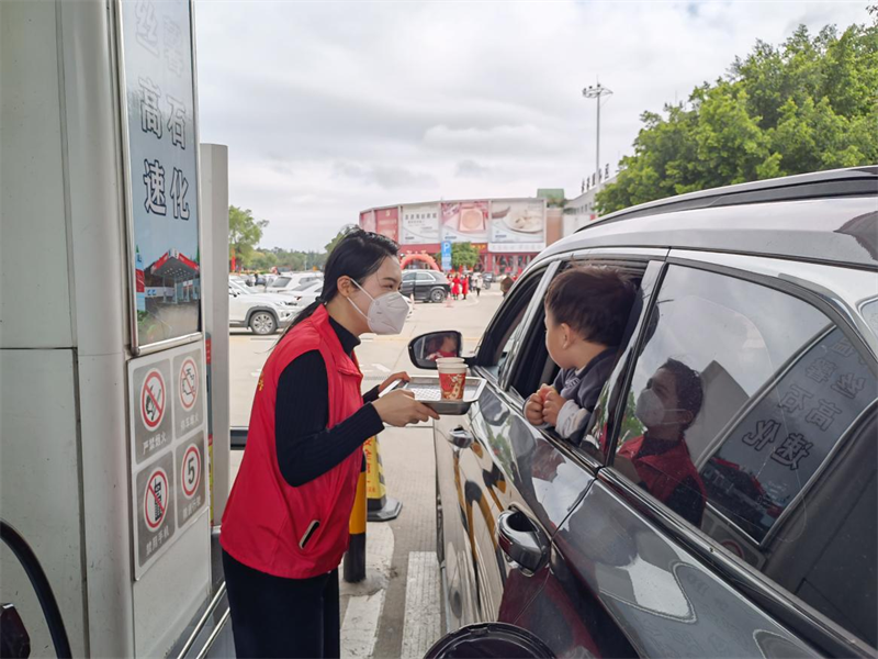 春節(jié)期間海絲高速能源志愿者為過往司乘獻(xiàn)上姜茶(高速能源公司供圖)