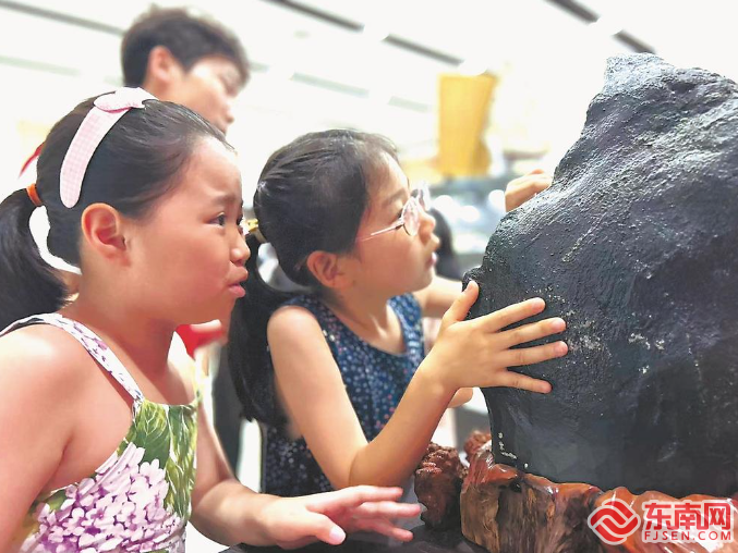 22日,青少年在福州大學(xué)地礦博物館參觀“鎮(zhèn)館之寶”。
