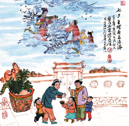 “乞巧文”要反復(fù)念七遍,祈求雙星賜予智慧,早日成才。