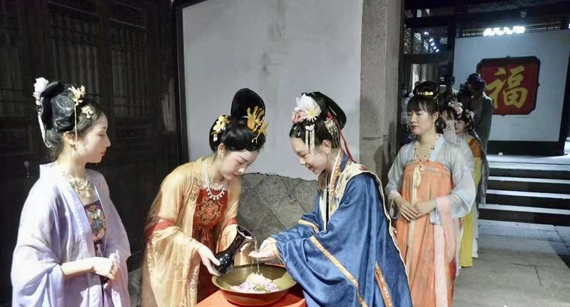 漢服愛好者凈手參加乞巧活動。(鄭帥 攝)