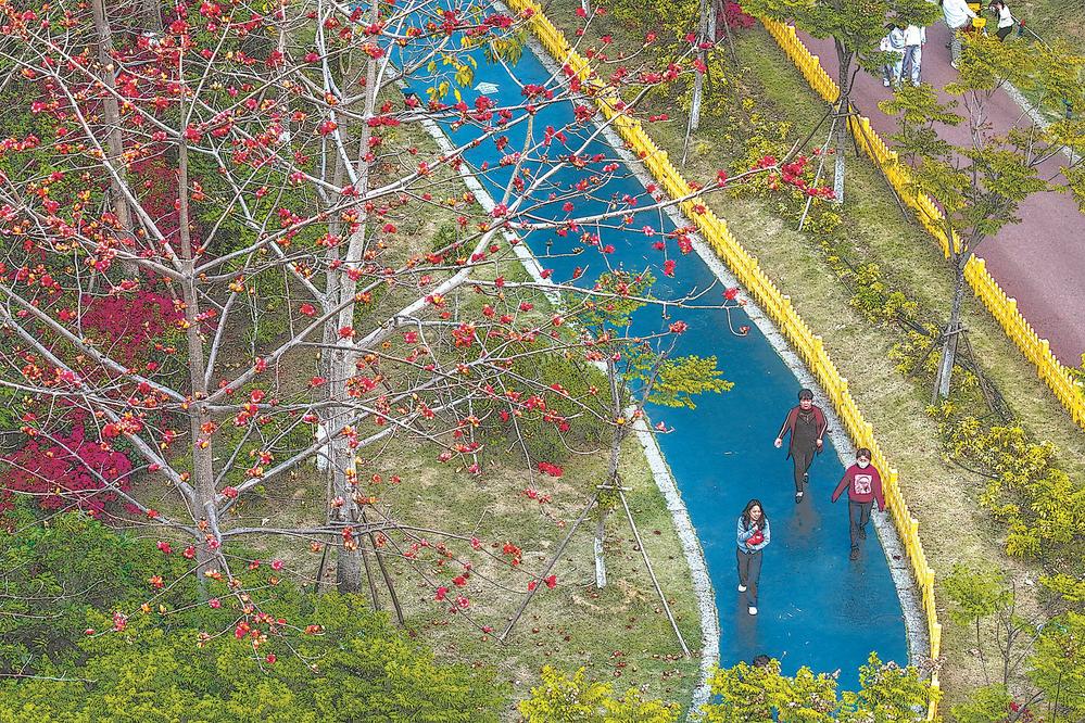 4日,泉州市區(qū)山線綠道,杜鵑花、木棉花、蔓馬纓丹、宮粉紫荊等盛放在步游道旁,市民游客徜徉山間,踏青賞花,感受春天的氣息。陳起拓 攝