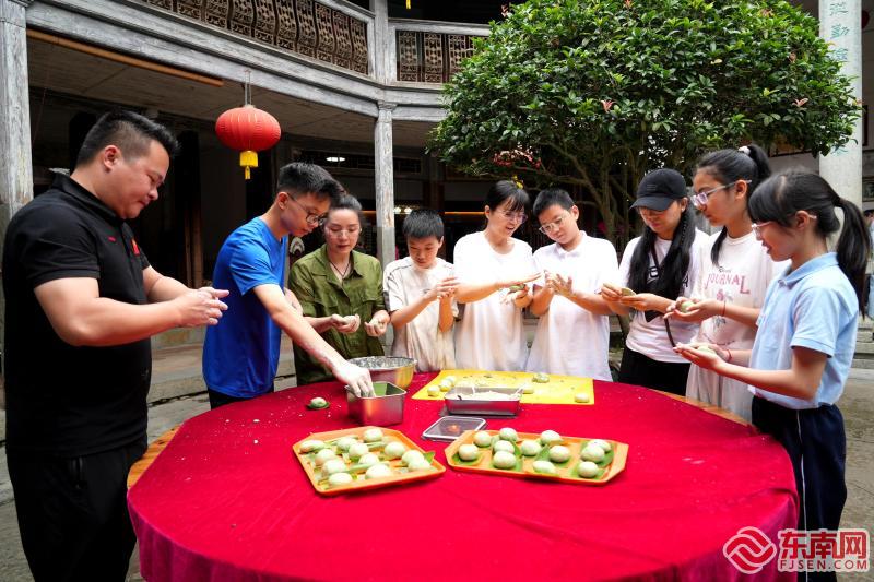 制作艾葉粄。永定區(qū)融媒體供圖