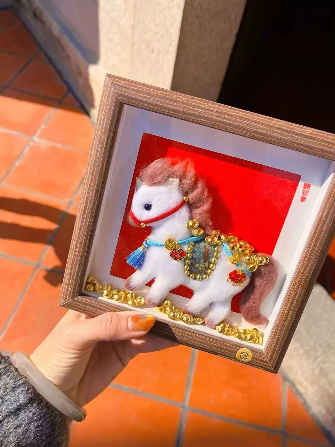 在漳州的一間工作室里,一縷縷輕柔棉絮正被賦予鮮活生命力。指尖輕攏慢捻間,棉絮褪去松散本態(tài),搭配精致元寶點(diǎn)綴,一匹軟萌靈動(dòng)的小馬便漸次成型——這便是漳州非遺棉花畫的獨(dú)特魅力,也是市級(jí)非遺代表性傳承人呂嘉慧為馬年新春獻(xiàn)上的新作。這些新作既保留了棉花畫質(zhì)地輕巧、質(zhì)感柔軟的核心特質(zhì),又承載著“馬到成功”“馬到福來”的傳統(tǒng)美好期許,精準(zhǔn)契合大眾新春審美與情感需求,不少客戶早已提前預(yù)定。