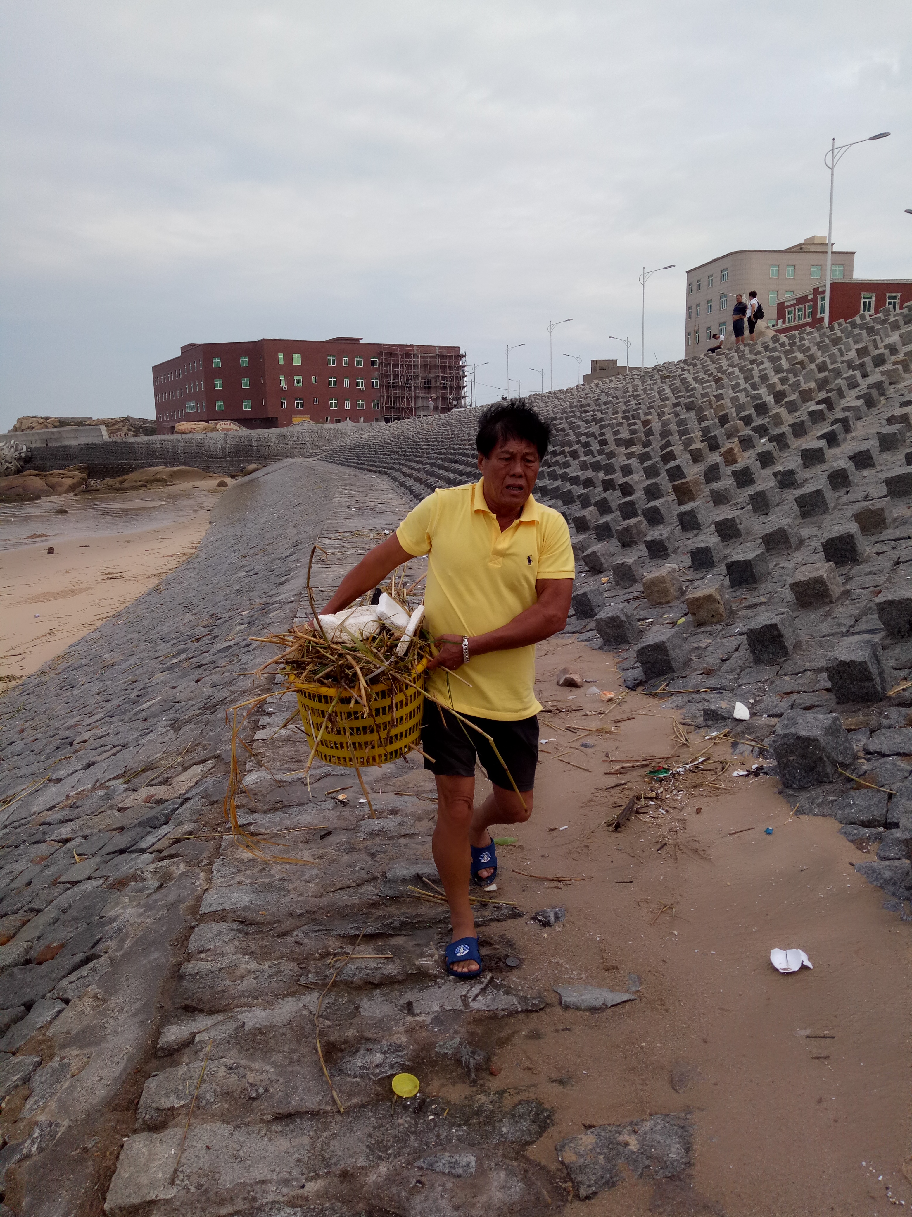 2014年7月17日,古稀之年的老船長(zhǎng)蔡加漸和退休教師陳省華組成了“公益夫妻檔”,戴上“環(huán)境保護(hù)勸導(dǎo)隊(duì)”的袖章,開始了第一次凈灘行動(dòng)。