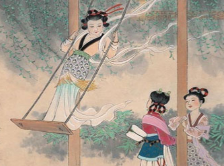 這是中國古代清明節(jié)習(xí)俗。秋千,意即揪著皮繩而遷移。它的歷史很古老,最早叫千秋,后為了避忌諱,改之為秋千。古時的秋千多用樹椏枝為架,再栓上彩帶做成。后來逐步發(fā)展為用兩根繩索加上踏板的秋千。蕩秋千不僅可以增進(jìn)健康,而且可以培養(yǎng)勇敢精神,至今為人們特別是兒童所喜愛。